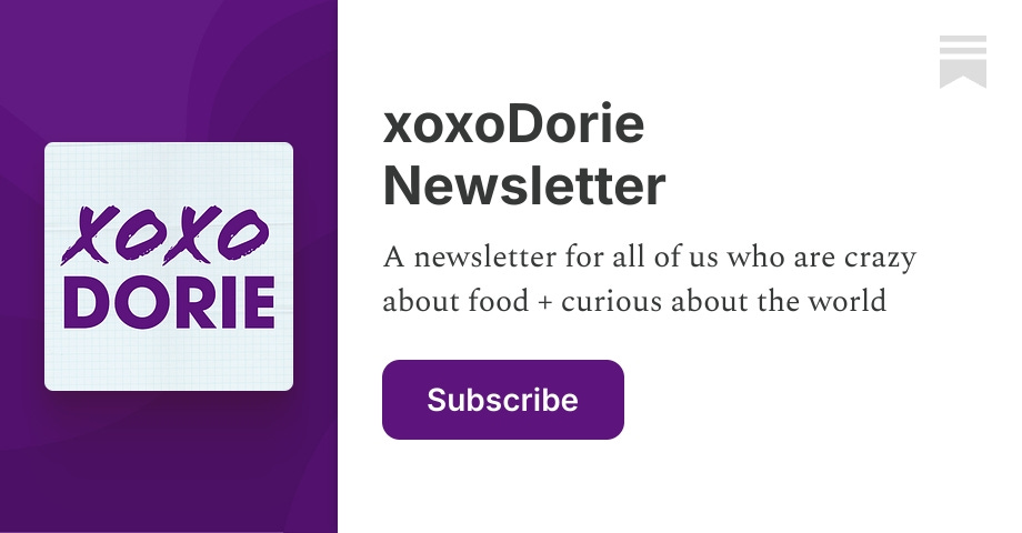 A newsletter for all of us who are crazy about food + curious about the world. Click to read xoxoDorie Newsletter, a Substack publication with tens of thousands of subscribers.