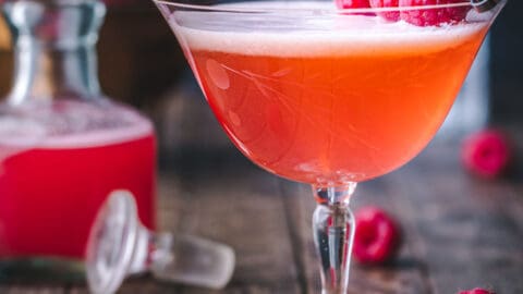 A pretty drink but one with serious depth, the Clover Club is staging a comeback. The homemade raspberry syrup is easy to make, and creates the classic peachy-pink color and tart-sweet flavor of this gin cocktail. Don’t be afraid of the egg white: it gives the drink a creamy body and a wonderfully frothy top.