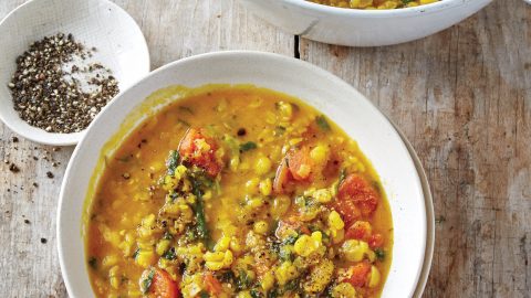 My favorite way of preparing split peas is to make a warm and comforting soup. (It’s a classic for a reason.) I also throw split peas in the rice cooker, the way I prepare lentils. The following is yet another way to add these nutritious little gems into your daily diet. Remember: In my ideal world, we’re all enjoying legumes (beans, chickpeas, split peas, or lentils) with every meal. If you prefer, use any type of lentil instead of the yellow split peas in this recipe. Serve this gorgeous dal over cooked whole grains. Dal, by the way, is the Indian word for “split pea,” or a dish made with them.