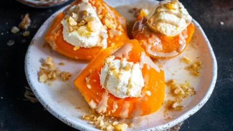 A traditional Turkish dessert made by baking pumpkin with sugar, then topped with tahini, walnuts, and optional clotted cream for a cozy, sweet fall treat.