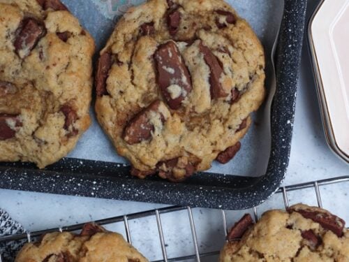 Whilst the cookie dough is chilling, preheat your oven to 180ºC Fan, or 200ºC regular! If your oven runs hot, go for 160ºC-170ºC.
