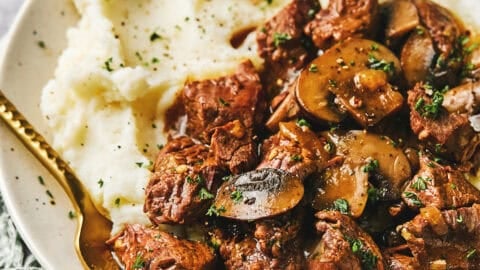 PJ on 2026-01-06 (5 stars): Used a pressure cooker and followed the recipe. Gravy was thin, but all was great. Served with broccoli and basmoti rice. I will triple the mushrooms and double the meat me time, preferred.