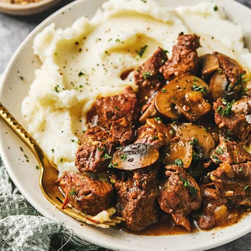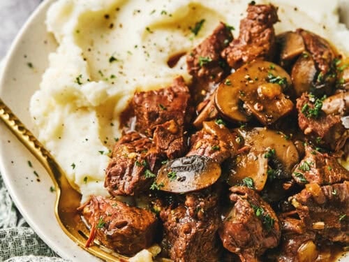 Phee on 2025-05-01 (5 stars): This has become part of our meal rotation. Great recipe! I did cut back on the beef broth to 3 cups, and add a bit more cornstarch to make the gravy thicker. Other than that, we've done it with and without the mushrooms, and either way is delicious. Thank you for this!