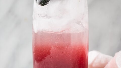 Blackberry Shrub is a a delicious drinking vinegar that is so dreamy when added to club soda or used in cocktails. Here it is paired with club soda and a spirit for a dreamy easy sipping cocktail made from a blackberry shrub recipe.