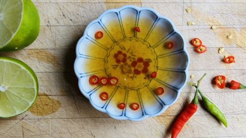 Finish with fish sauce. Add the fish sauce and any of the optional ingredients. Taste again and adjust the flavors to your liking, balancing out the sour, sweet, salty and spicy. Aim for a bold, forward finish -- perhaps a little stronger than what you'd normally like. This sauce is likely to be used to add final flavor to foods wrapped in lettuce or herbs, which are not salted and therefore need a little lift to heighten the overall eating experience. My mother looks for color to gauge her dipping sauce. When it's a light honey or amber, she knows she's close.
