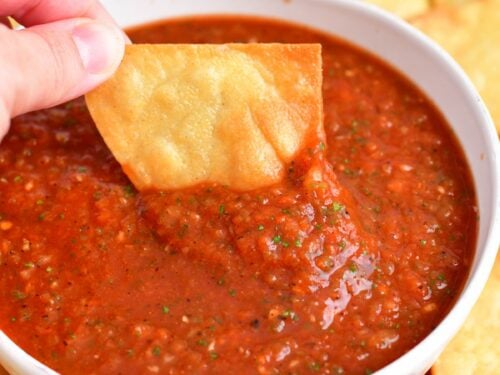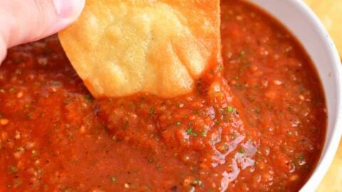 My homemade salsa recipe is rich in flavor and takes 5 minutes to make! A few key ingredients to make the best flavor are fire roasted tomatoes, seasoning, fresh cilantro, and fresh lime juice, all blended together to make an incredibly delicious restaurant-style salsa.